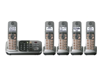 KX-TG6645B Expandable Digital Cordless Answering System with 5 Handsets • DECT 6.0 Plus Technology • Power 1,4Back-Up Operation (Handset) • Talking Caller ID1,2,3 ... Content Retrieval